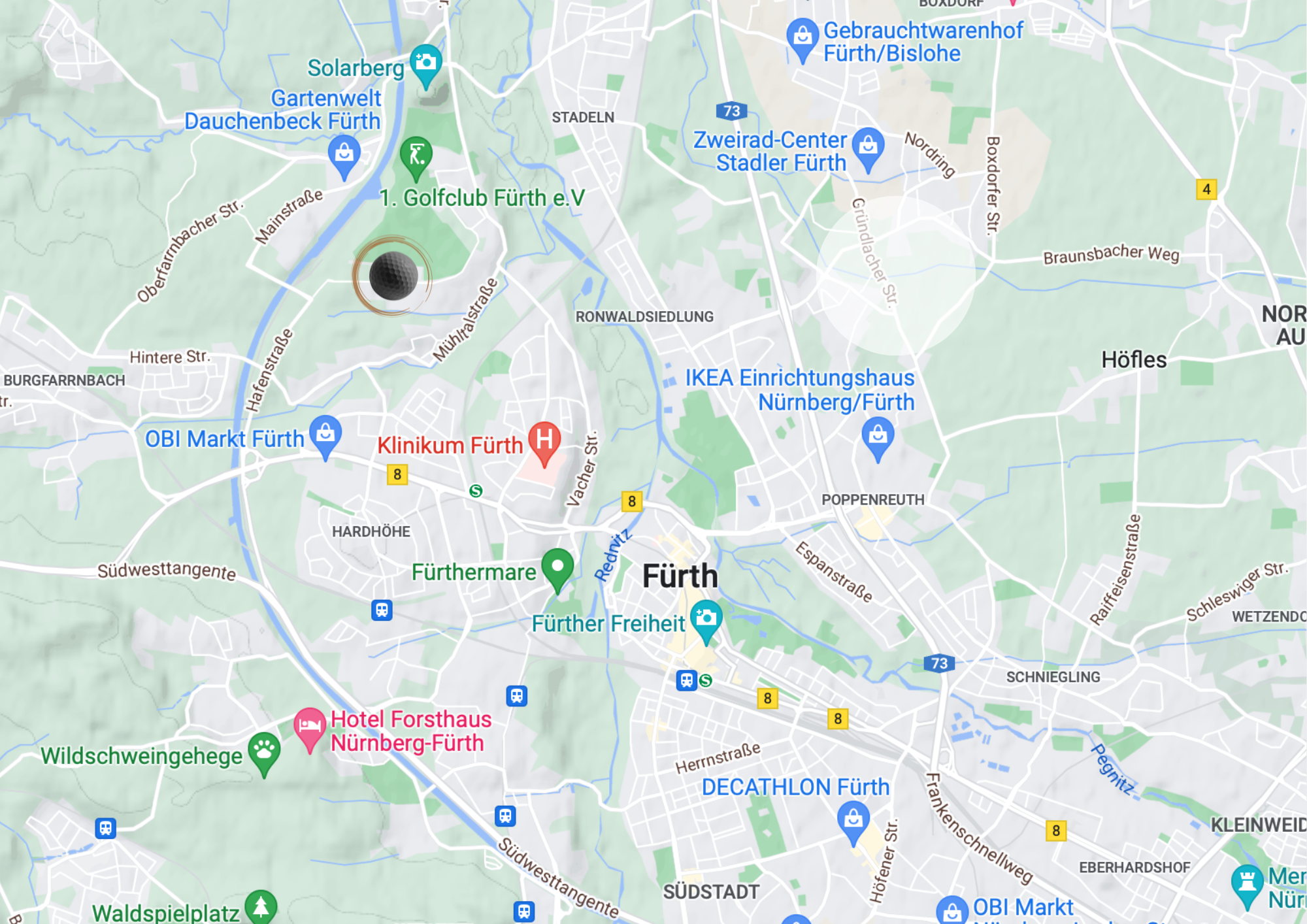 Golfpark Fürth, nur circa 200 Meter vom idyllischen Wiesengrund der Regnitz entfernt. Der Standort Golfpark Fürth liegt im Herzen der Metropolregion Nürnberg / Fürth / Erlangen und ist aus jeder Richtung mit dem PKW oder den öffentlichen Verkehrsmitteln sehr gut erreichbar.